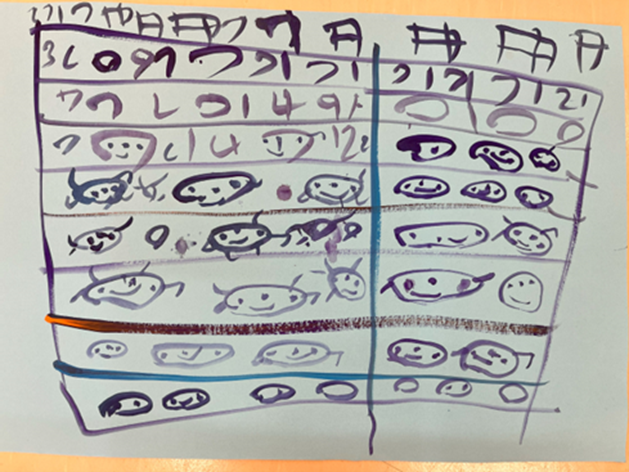 俊二さんは「俊二会」というパーティにお友達を招待して、ごちそうするのが楽しみです。仲間の笑顔が一杯のこの絵も、そんなイメージでしょうか?